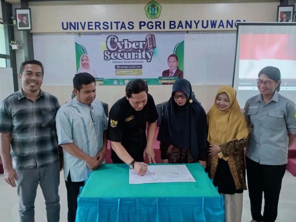 UNIBA (10 Maret 2026) Mahasiswa Fakultas Keguruan dan Ilmu Pendidikan telah mengikuti acara seminar kewirausaahan dengan pemateri Harjianto, S.Pd., M.M dan Cahyaningsih Wiwin U, M.Pd. Serta dilakukan penandatanganan kerjasama antara Prodi BK dengan PNDA. Pelaksanaan kegiatan diadakan di Universitas PGRI Banyuwangi di ruang B8/9.